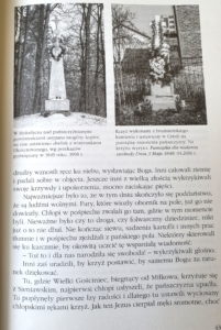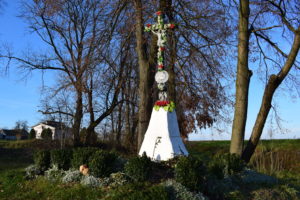 W książce znajduje się też także informacja, że znajduje się tam kamienny krzyż postawiony na pamiątkę zniesienia pańszczyzny. Stał na początku wsi i postawiony prawdopodobnie był na miejscu starszego derwnianego. Fundatorem był Teodor Terenieniec. Prawnukowie Teodora żyją w Wałczu, Jaworze, Jelonkach koło Pasłęka i Katowicach.