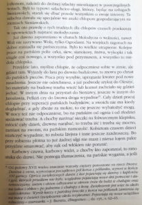 Znajdziemy tam opis budynków i sprzętów, jakie znajdywały się w folwarku. Był tam między innymi gąsior, czyli urządzenie do karania krnąbrnych chłopów w dobrach szlacheckich. Najczęściej były to dwie grube deski lub kłody z wyciętymi na ręce i głowę otworami. Takie urządzenia miały być w każdym dworze w tym regionie: