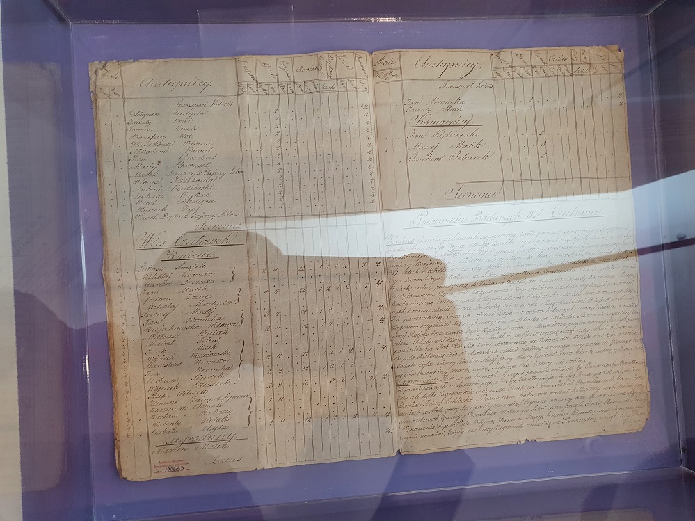 Obecnie w MEK znajduje się wystawa stała o nazwie KOGO STAĆ. Jednym z jej elementów są eksponaty związane z pańszczyzną. Zajdziemy tam między innymi bony folwarczne i księgę inwentarzową, gdzie znajdywały się spisy powinności pańszczyźnianych chłopów. Pochodzi ona z Czułowa pod Krakowem, ale na terenie nas interesującym były podobne. Istnieje historia mówiąca o tym, że tego typu księgi zakopywano pod krzyżami. Jednakże jest to mało prawdopodobne. Trudno sobie wyobrazić, by ktoś z dworu oddał chłopom księgi rachunkowe.